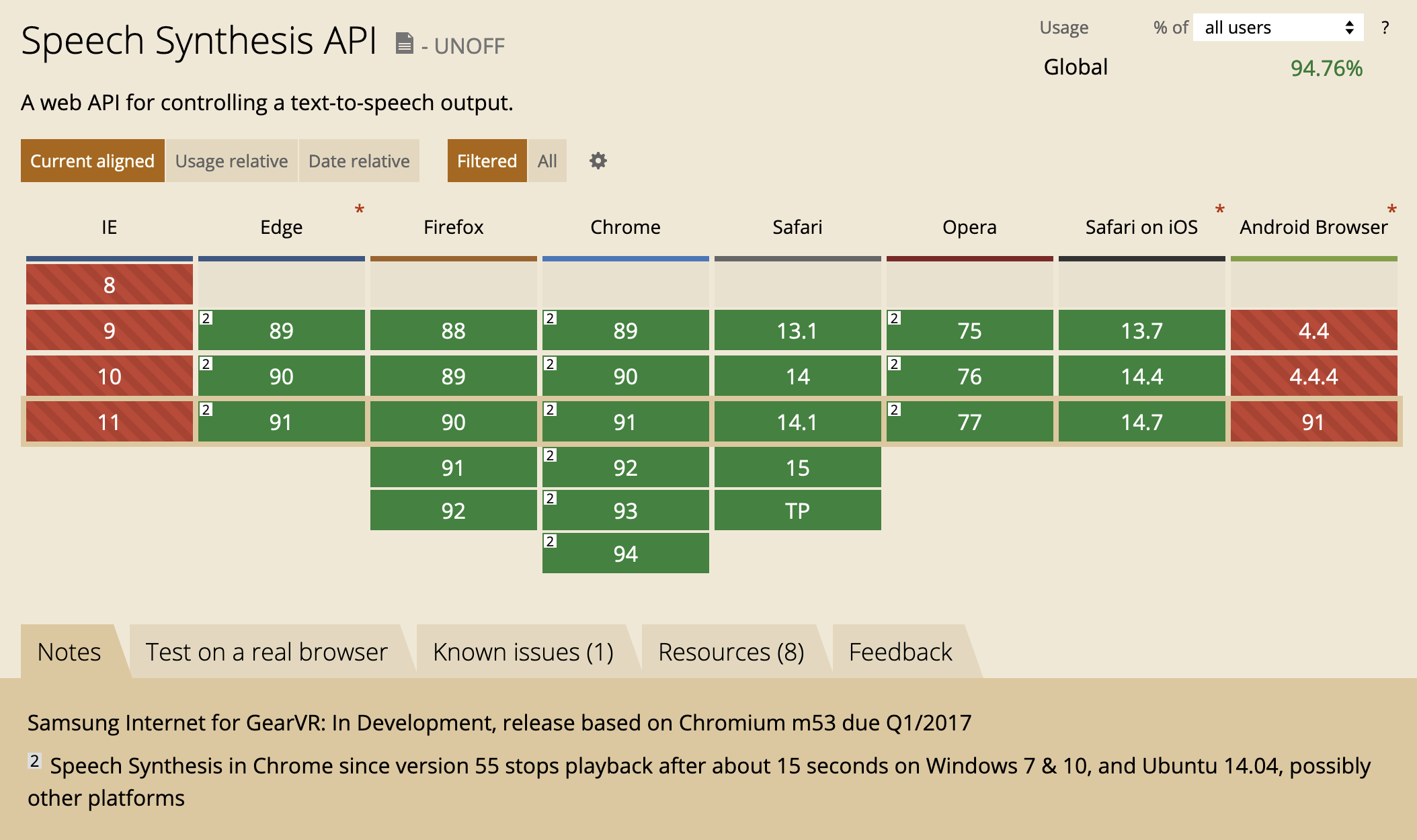 if (window.speechSynthesis) {// ...} else {alert('Speech Synthesis API не поддерживается');}